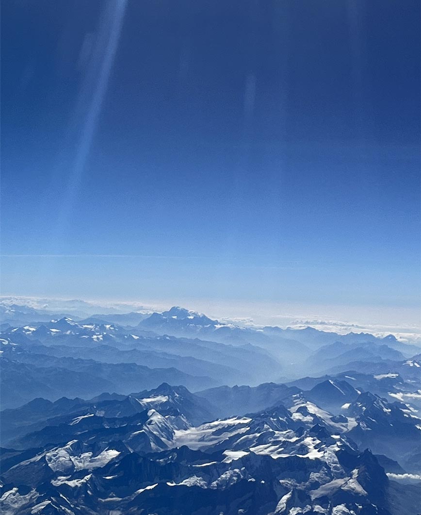 Nick had not long returned from travelling and was keen for a photograph he had taken whilst flying to his destination be used in the final piece. Shown below.